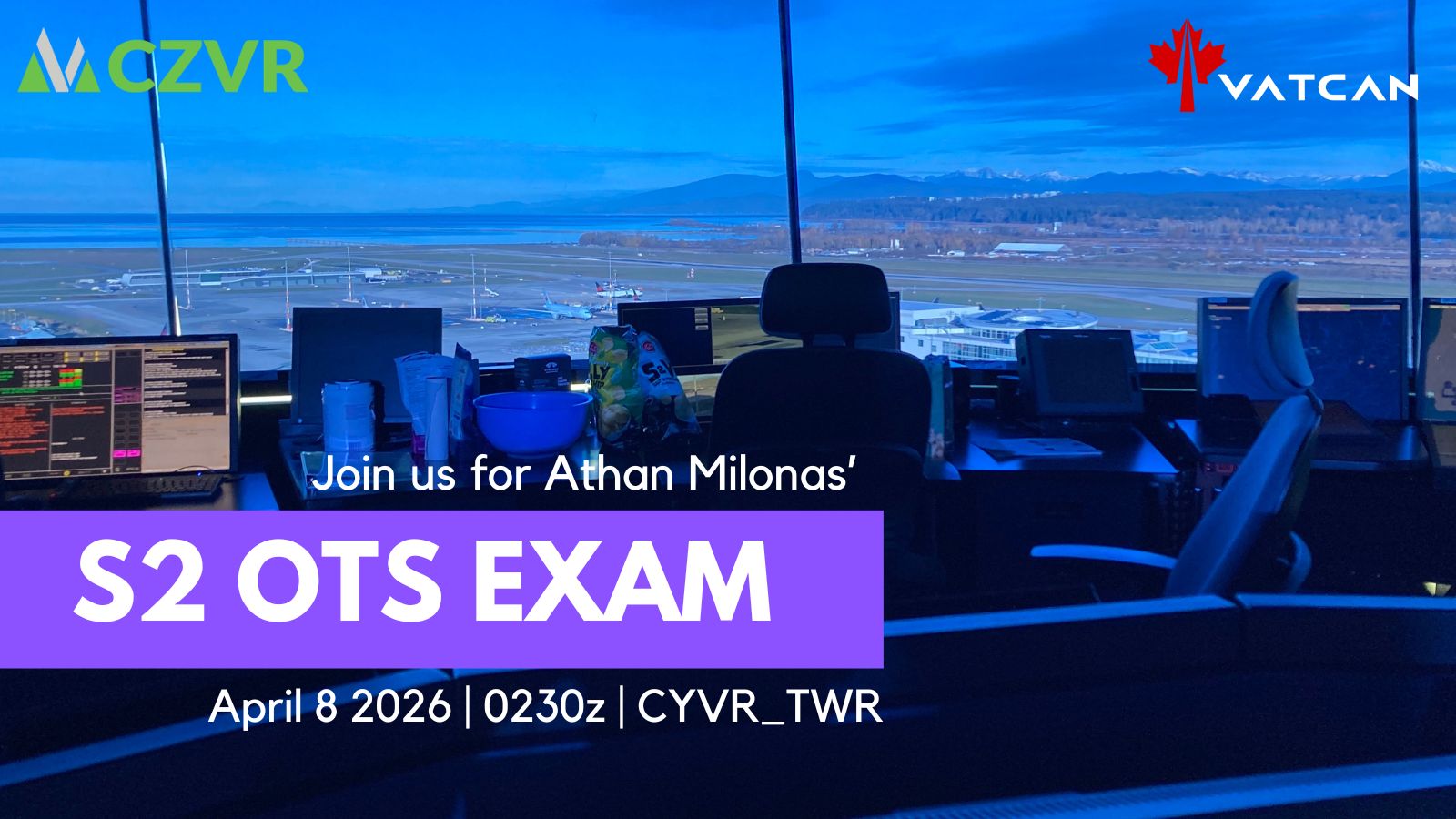It's time for yet another OTS in Vancouver! Come on out to CYVR on April 8th at 0230z to let Athan test his skills on CYVR Tower as he takes on the S2 OTS! Good Luck Athan.